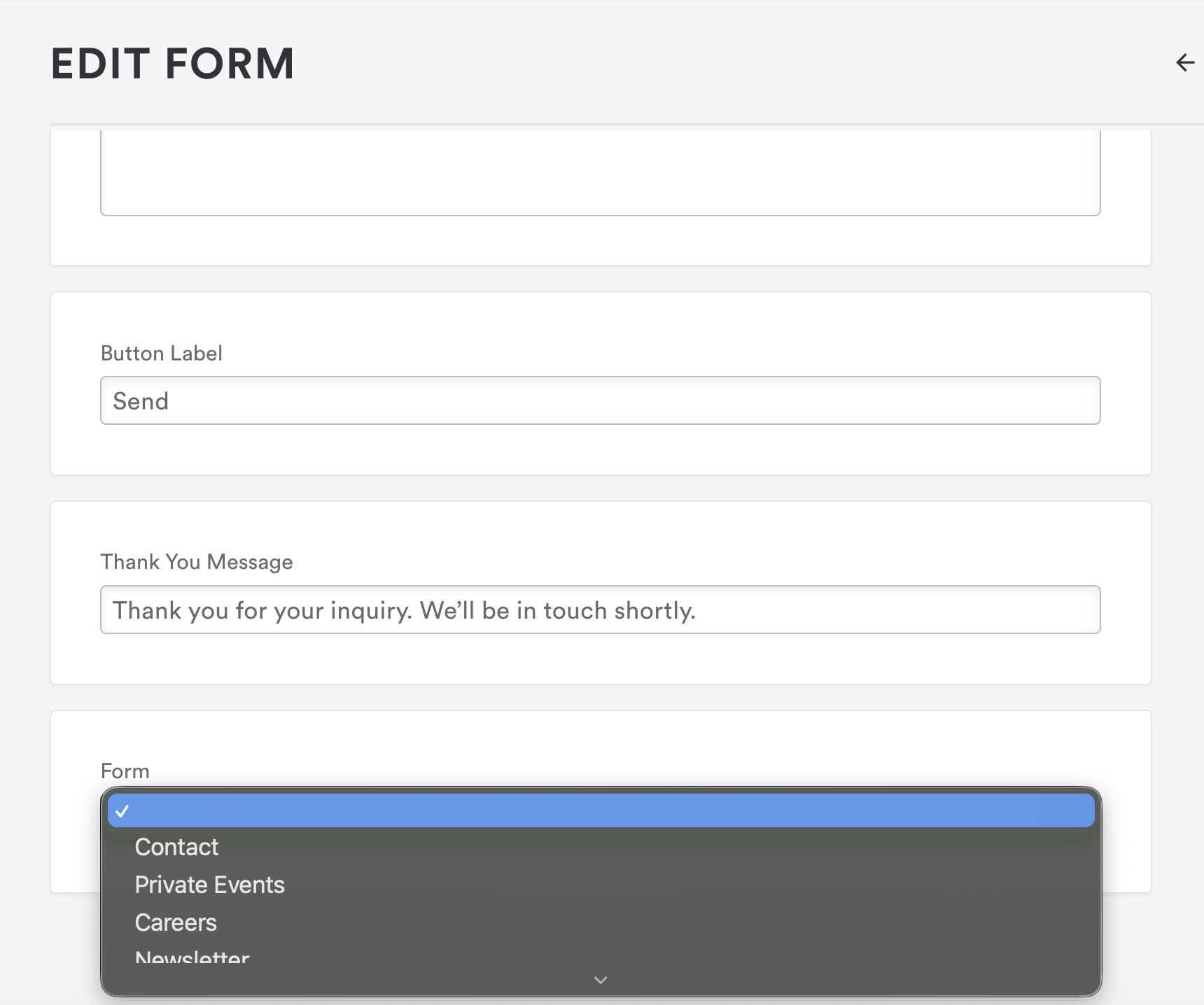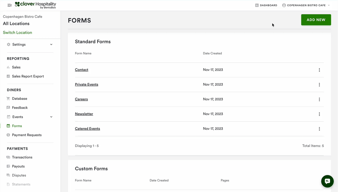 Custom Forms help customers engage their diners and grow your business. You can create a custom form from scratch and add it to your website.