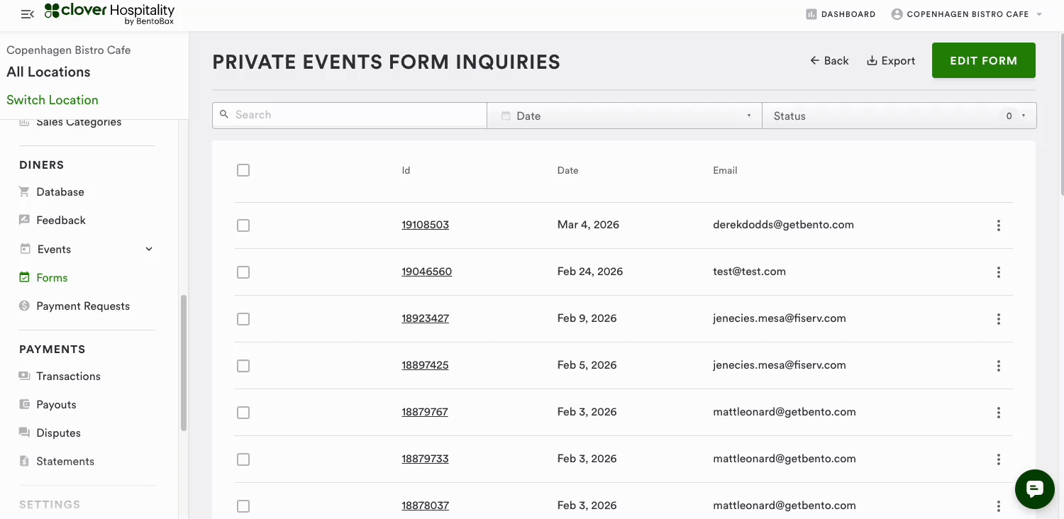 Search Functionality: Search inquiries by either inquiry ID or diner email