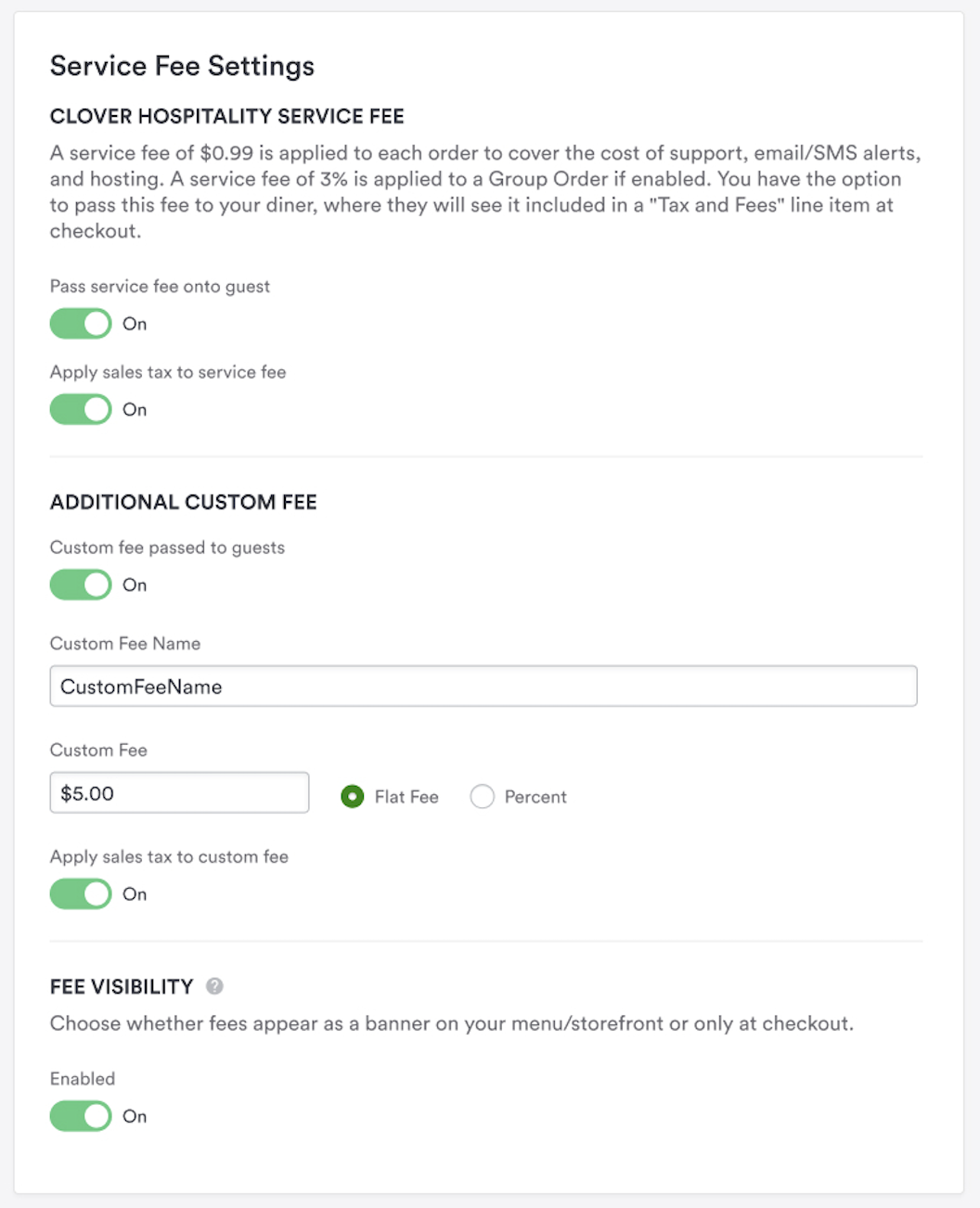 A: Enabling the toggle is optional. Some merchants may choose to enable it proactively (for example, if they operate in multiple jurisdictions or prefer to show fees more prominently). You can enable or disable the toggle anytime in the Location-level settings for Online Ordering / Online Catering in the Clover Hospitality dashboard.Â