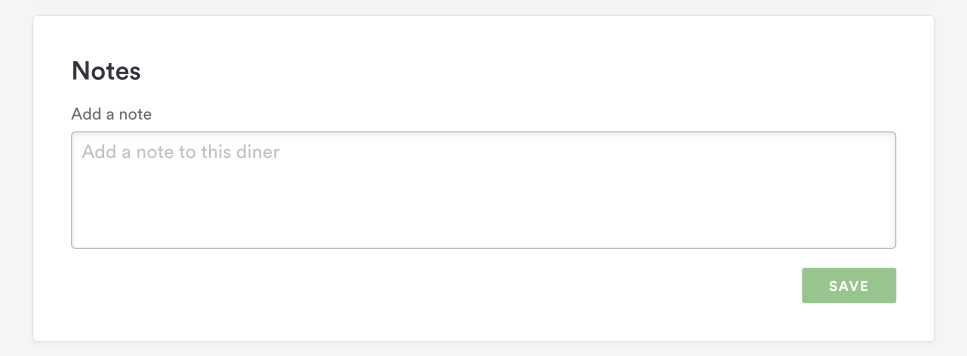 At the bottom of each Diner Profile, there is a “Notes” section where you can add & save one or more notes about the diner (ie birthday, diet preferences, etc).