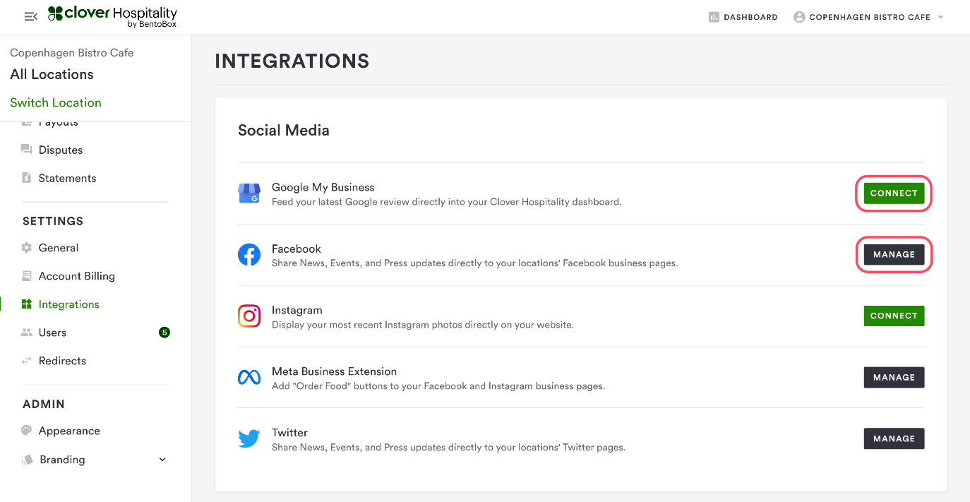 Connecting Your Social Media and Business Profiles to Clover Hospitality by BentoBox