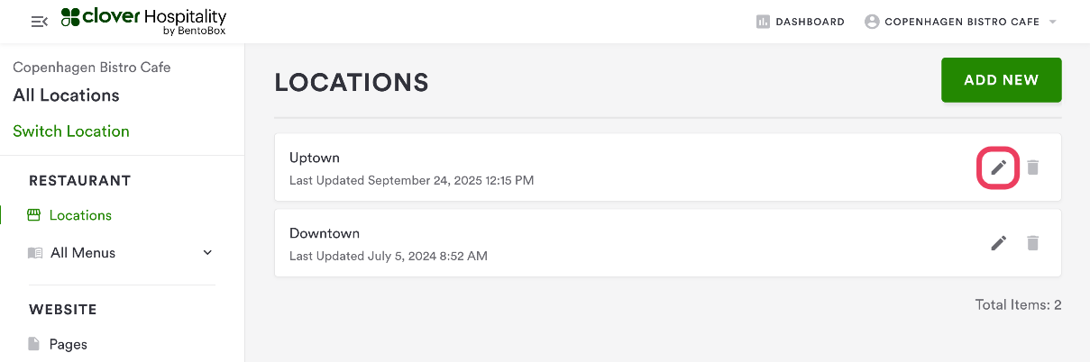 The Restaurant > Locations section is where all important location information should be stored. Follow the steps below to add or edit a Location:
