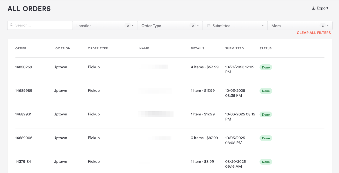 This article walks through Order History, a place where you can see a log of all orders that have come in across pickup, delivery, and dine-in for your restaurant.Â