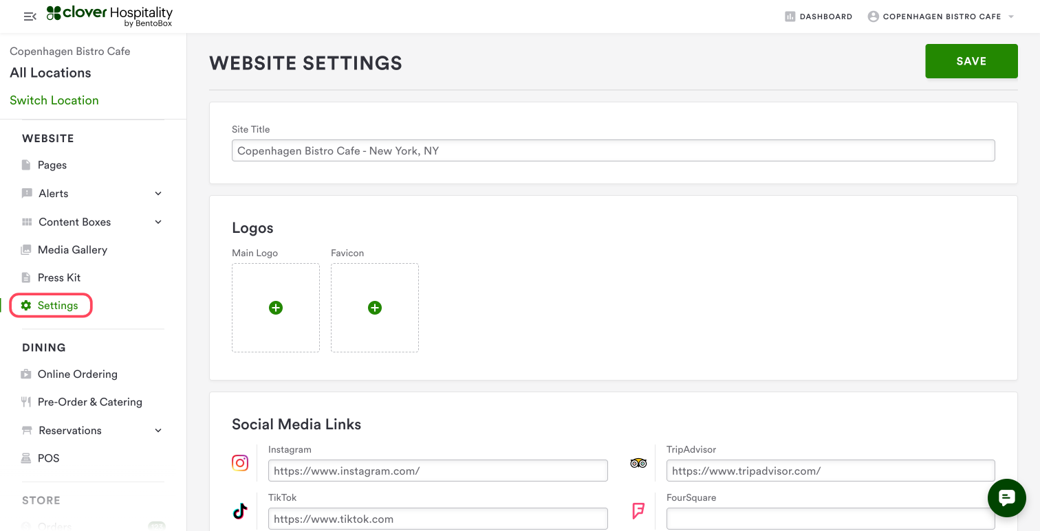 The Website > Settings page allows you to add and make edits to fields that are specific to your website.