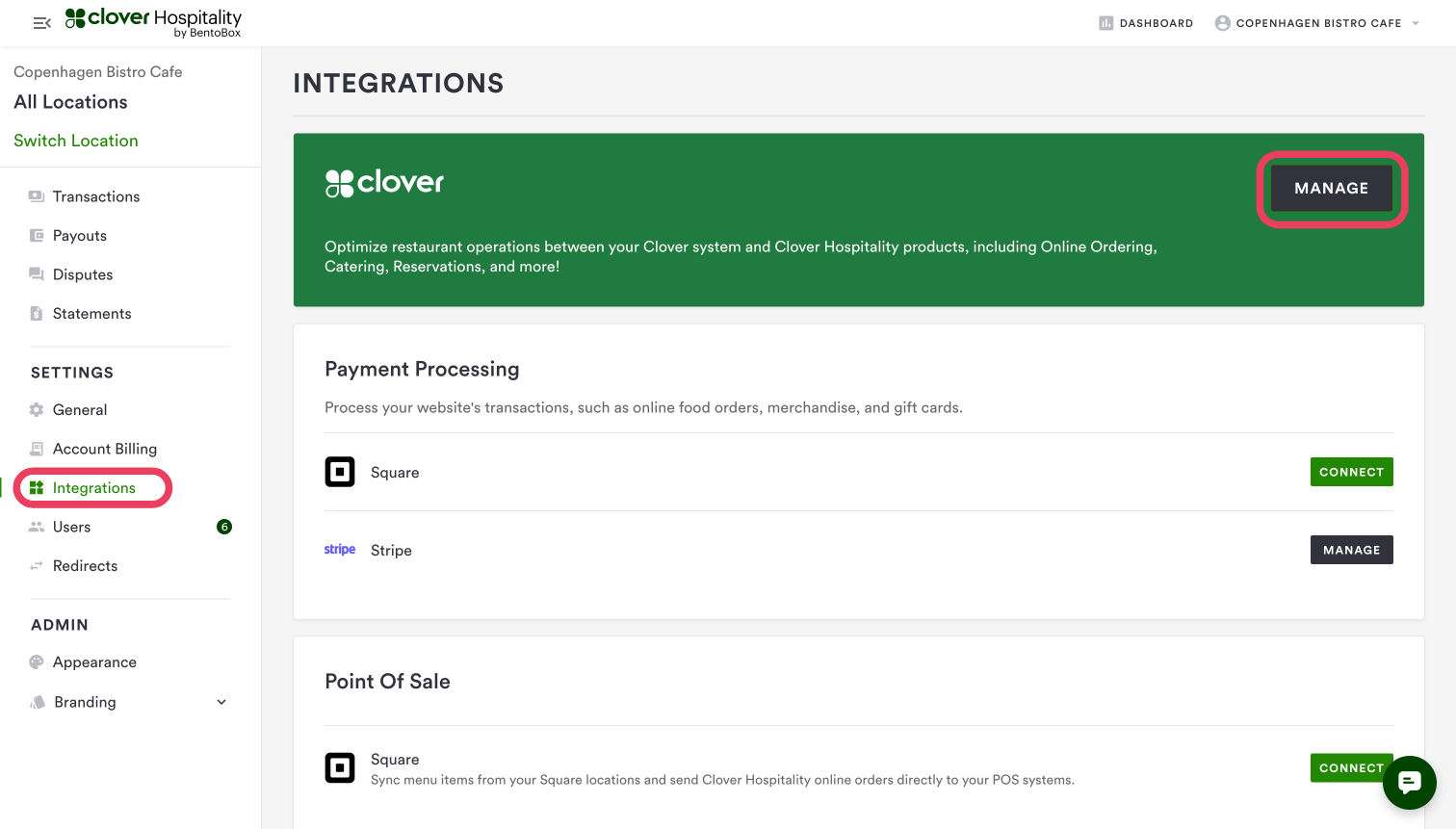 To set up Clover POS Integration in the platform, there are a few prerequisites and settings that must be configured in both Clover Hospitality by BentoBox and Clover.