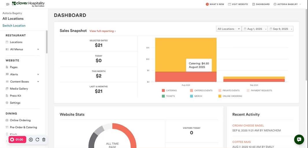 A: All transactions processed via the shared POS MID, including POS, online ordering, catering, merchandise, gift cards, and events.