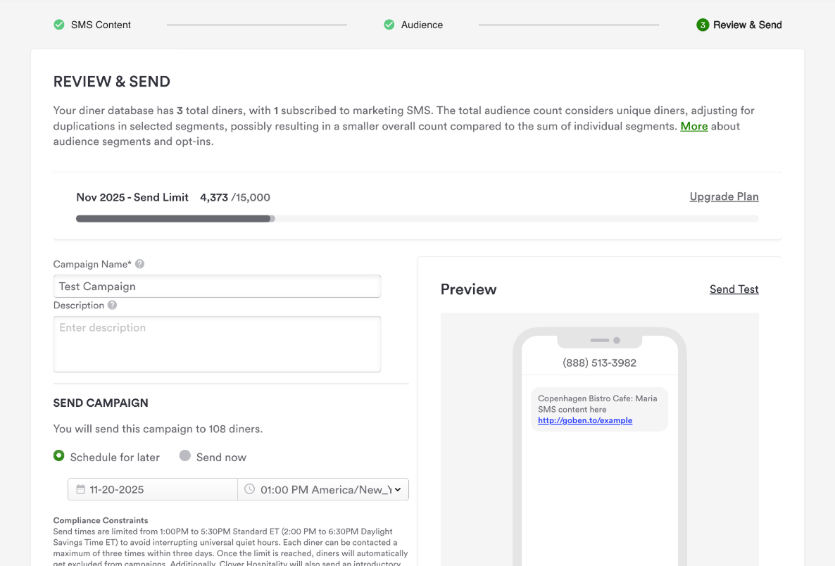 ⢠Scheduling: Plan campaigns in advance to reach diners at the perfect moment.